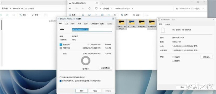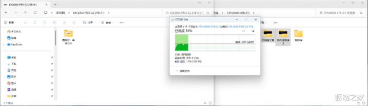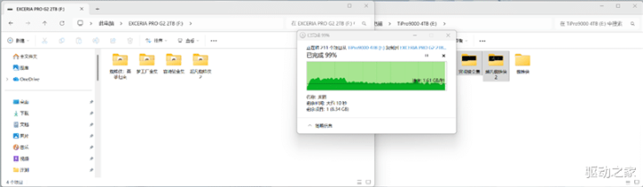 铠侠EXCERIA PRO G2 2TB SSD本色容量1.86TB(二进制容量),咱们从致态TiPro9000 4TB SSD一次性拷贝1.85TB的文献过来,尽可能用完这块SSD的可用空间。