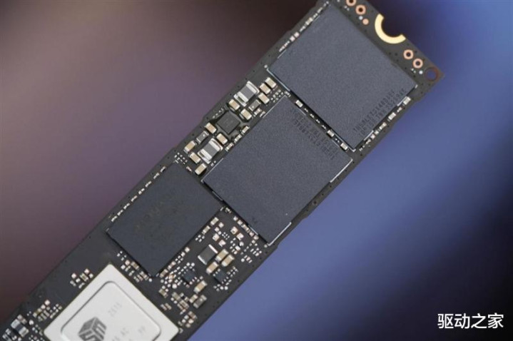 撕下正面的贴纸,不错看到主控、DRAM缓存、2颗NAND。